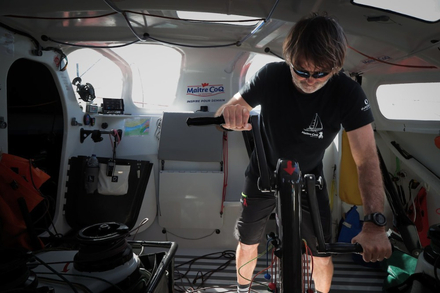 Lors d'une journée normale autour du monde, un navigateur peut passer "entre 7 et 20 heures" devant son ordi, selon lui: un mode de vie très sédentaire, renforcé par le manque de place dans des cockpits de plus en plus en fermés.