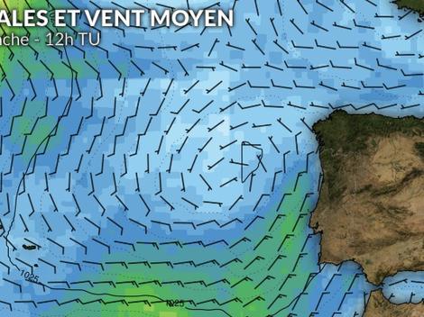 24 heures après le départ, en progressant sur la partie sud du golfe de Gascogne, le vent de nord-est se renforcera graduellement pour atteindre 10 à 15 noeuds. Les marins pourront enfin accélérer en visant un couloir de vent plus consistant au large de la Corogne. Ils auront un empannage à effectuer pour piquer vers le sud, en direction du Cap Finisterre. Des petits décalages dans les routes pourront déjà s’effectuer en fonction du point d’empannage choisi par les skippers.