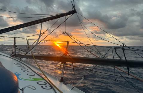 Jingkun Xu ne cache pas son plaisir d’être en mer. « J’essaie de profiter de tout, confie-t-il. Chaque jour me rend heureux ! » Les skippers ont été nombreux à profiter de petits bonheurs à bord. Jean Le Cam, l’humeur rieur, parle de Jean, la peluche du film « La Vallée des fous* » qu’il a embarqué. « « Elle me parle, me dit 'tu as bien mangé ?’ 'Oh oui, j’ai bien mangé », confie-t-il hilare. Le bonheur se décline dans une manoeuvre réussie chez Violette Dorange (Devenir), « une sieste et un rêve » chez Boris Herrmann (Malizia-Seaexplorer), une part de clafoutis « préparé par ma maman » pour Thomas Ruyant (VULNERABLE), un pamplemousse pour Tanguy Le Turquais (Lazare), un poisson-volant vu par Louis Burton (Bureau Vallée) ou encore un lever de soleil immortalisé par Éric Bellion (STAND AS ONE). Des moments de joie pour retrouver le sourire, un peu, alors que l’un des leurs a dû renoncer à cette aventure.
