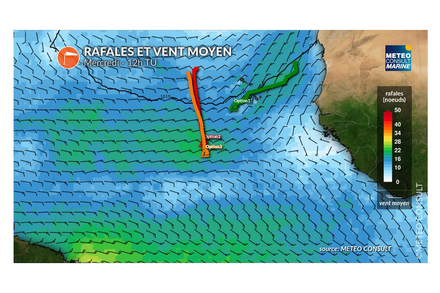 Ce mercredi, le gros de la troupe restera sous un régime d’alizés de 15 à 20 noeuds avec un vent qui prendra un peu droite pour s’orienter est-nord-est. Les premiers marins (Option 2 et 3) approcheront de la zone du Pot au Noir avec un temps qui deviendra instable en fin de journée. Avec la présence de grains orageux, les vents deviendront de plus en plus irréguliers, ce qui risque de chambouler le classement. Jean Le Cam sur la route Est verra l’écart se creuser avec les ténors de la course. Son Imoca à dérives et sa trajectoire sur une route Est le pénalisera.