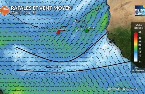 Pour les solitaires, l’enjeu du moment, au-delà d’engranger des milles sur la route, est avant tout d’affiner au mieux leur point d’entrée dans le Pot-au-Noir, cette fameuse zone de convergence intertropicale. Si sa dénomination n’a pas d’explication certaine (certains y voient l'évocation des orages qui assombrissent la lumière, d'autres rappellent les navires pratiquant la traite des noirs africains à travers l'Atlantique et quelques-uns arguent un lien avec le jeu colin-maillard), son évolution n’en a pas réellement non plus. « C’est une zone où il est impossible de prédire les choses », a d’ailleurs rappelé hier Basile Rochut, consultant météo de la course. Sans trop se mouiller, ce que l’on peut dire concernant ce qui attend les marins, c’est que ça se présente plutôt "actif". Cumulonimbus, orages violents, pluies diluviennes, vents faibles et variables : le package s’annonce en effet complet. « Le Pot-au-Noir est toujours une zone mystérieuse. On peut s’attendre à ce que ça revienne par derrière parce qu’il a l’air de se dégager en patientant un peu », a annoncé Sébastien Simon. Autrement dit, ce fameux front intertropical pourrait se montrer plus copieux pour le groupe de tête que pour ses poursuivants, ce qui pourrait avoir pour effet de resserrer les troupes une nouvelle fois.