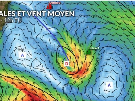 Quant aux foilers, il est incertain qu’ils parviennent à maintenir leur avance face à la dépression qui les a propulsés jusque-là. Si la situation change et qu’ils sont rattrapés, ils devront aussi faire route vers le Sud pour se rattacher au prochain front. Quoi qu’il en soit, ils auront au moins une dépression d'avance sur les dériveurs.