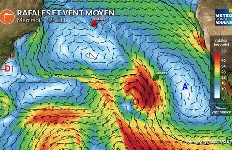 Ragaillardi, le marin originaire des Hautes Alpes s’emploie désormais à trouver le « tout petit trou de souris dans lequel il va falloir se faufiler », lui qui est déjà « dans les derniers souffles » de la dépression qui l’a propulsé dans la bonne direction : " Il n’y a vraiment pas de marge, c’est pas évident : d’un côté il y a de la molle, de l’autre côté il y a le front. Je vais essayer de passer au milieu de tout ça sans me faire piéger, et à un moment je me ferai rattraper, il faudra empanner vers le Sud et puis rattraper le vent du Sud ! "