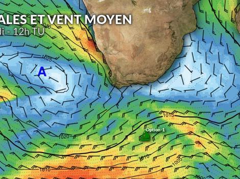 Après avoir empanné, le groupe de tête des foilers (Option 1) mettra cap vers l’est-nord-est et retrouvera des conditions de vent temporairement moins musclées avec une mer plus maniable. Il leur faudra peaufiner leur trajectoire en prévision d’une dépression très creuse qui les rattrapera par l’ouest en milieu de semaine. Des options de route différentes pourraient se prendre parmi les leaders.