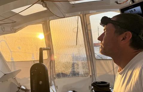 Les premiers foilers ont dû faire une route très efficace en restant à l’avant d’un front froid. La mer y est encore assez bien rangée. Ils se remettront sur tribord quand le front les aura dépassé et que leur vent aura tourné à l’Ouest-Sud-Ouest. La mer sera alors croisée, le vent temporairement un peu mou, mais ils pourront rapidement retrouver une bonne vitesse sur leur route directe. C’est cela, être bien en phase avec un système météo.