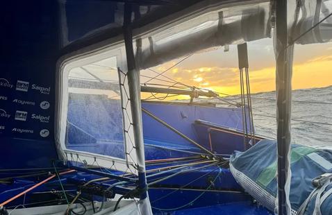 Flotte-2 : ils connaissent une amélioration sur le dos de l’anticyclone avec des vents de 25/30 noeuds sur une longue houle de 5 mètres.