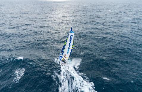 Flotte-1 : Charlie Dalin et Sébastien Simon, GROUPE-1, ont vu leur vent de nord-ouest se renforcer nettement . Ils font cap à l’est avec une vitesse moyenne de plus de 20 noeuds.