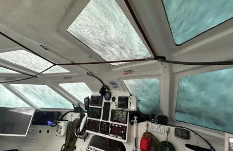 Flotte-2 : Yoann Richomme et Thomas Ruyant, ont réussi à réduire leur retard sur les leaders grâce à un vent de nord-ouest de 35 à 40 noeuds et une trajectoire proche de la route directe. Ils naviguent donc dans des conditions très musclées avec des rafales à plus de 50 noeuds et une mer démontée avec des vagues de l’ordre de 5 mètres. Ils doivent donc redoubler d’attention pour préserver leur monture.