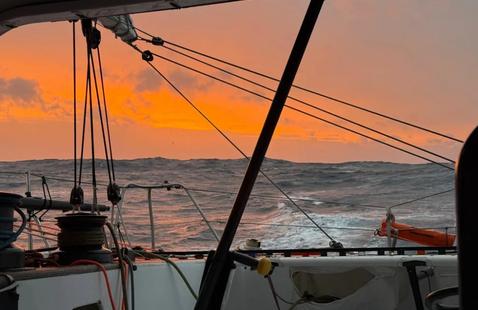 Les plus avancés s'affronteront demain après-midi et ceux à l’arrière du groupe dès ce soir. Certains se sont placés très nord (Jean Le Cam), d’autres au centre (Tanguy Le Turquais, Lazare) et certains plus au sud (Louis Duc, Fives Group - Lantana Environnement et Guirec Soudée, Freelance.com). Antoine Cornic (HUMAN Immobilier) fait partie des partisans de la route sud. Privé d’une voile de portant (FR0) depuis dimanche, il se prépare à affronter le « gros » du coup de vent : "Finalement, c’est une dépression assez classique par rapport à ce qu’on vit dans le Sud. Ce matin il faisait beau mais le temps va se couvrir, la pluie va arriver avec peut-être des grains. Ensuite, on devrait avoir des rafales de 65 noeuds donc ça va être un peu sportif ! Après, je n’ai pas envie de me mettre la rate au court-bouillon. Mais je continue à prendre du plaisir à être en mer. Hier, j’ai fait des surfs à plus de 30 noeuds, c’était incroyable."