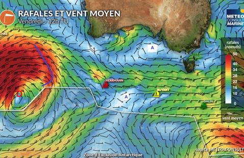 La bonne nouvelle pour tout ce groupe, c’est que « l’après-dorsale » s’annonce un peu moins pénible que prévu car derrière, une dépression se creuse et engendrera progressivement du vent fort, idéal pour revenir sur le trio de tête. « Ça va faire l’élastique... Il va y avoir du match », promet Basile Rochut. « Le vent de Nord qu’on devrait retoucher va nous propulser quasiment jusqu’à un bon tiers du Pacifique, ça peut faire un bon run de vitesse », corrobore Nicolas Lunven.