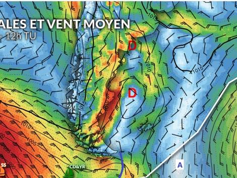 Thomas Ruyant et tout le groupe des poursuivants jusqu’à Justine Mettraux se retrouve dans des vents incertains, coincés entre la dépression secondaire qui les dépasse par le nord et la dépression principale dans le grand sud. Ils voient les trois premiers s’éloigner rapidement, le cap Horn se rapprocher lentement !