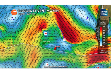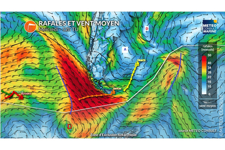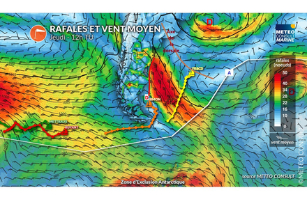 Ils ont ainsi tiré parti d'un vent soutenu pour maximiser leur route vers l'est, visant à passer à l'est des îles Malouines dans un flux d'ouest-sud-ouest établi à 20 noeuds.