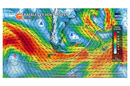 Ce samedi, Yoann Richomme et Charlie Dalin évolue toujours sous un flux d’ouest soutenu de 20-25 noeuds au nord d’une dépression. Ils gardent un cap nord-est, afin d’éviter une dorsale au large de l’Argentine avec des vents très faibles. Sébastien Simon bénéficie d’un flux de sud tonique de 20-25 noeuds, lui permettant de conserver une bonne vitesse. Thomas Ruyant est peu à peu freiné dans sa progression à cause d’une dorsale lui coupant la route. Yannick Bestaven, devrait franchir le Cap Horn en milieu de nuit sous de fortes conditions avec des vents de nord-ouest de 30-35 noeuds et des vagues de 3 à 4 mètres.