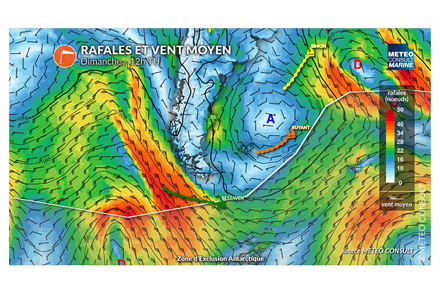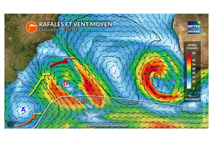 Ce dimanche, le flux basculera au secteur nord-ouest pour le duo de tête et le vent aura tendance à faiblir autour de 10-15 noeuds en moyenne, ce qui devrait les ralentir. Sébastien Simon restera sous l’influence de la dépression avec un flux de sud-est soutenu d’une vingtaine de noeuds. Cette configuration devrait le rapprocher de Charlie Dalin et Yoann Richomme. Thomas Ruyant subira des conditions assez faibles d’ouest-sud-ouest avec des vents autour de 10-15 noeuds. Yannick Bestaven quittera peu à peu les conditions fortes du Cap Horn, évoluant en fin d’après-midi sous un vent de nord-ouest de 10-15 noeuds environ.