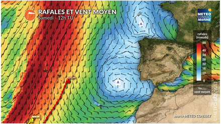 Dans le flux de sud de 25/30 noeuds, sur une mer pas trop formée, la progression vers le golfe de Gascogne se fait très rapidement, avec des vitesses proches de 25 noeuds, pour les trois postulants au podium. Yoann Richomme pourrait être à une cinquantaine de milles derrière Charlie Dalin. Ce n’est vraiment pas beaucoup.