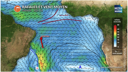 Le groupe des poursuivants est déjà sous les orages à proximité du Pot-au-Noir. C'est parti pour 36 à 48 heures pénibles.