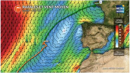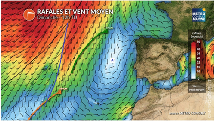 Pour minimiser le temps à passer en bâbord amure (allure où il est lourdement handicapé par manque de foil), Sébastien Simon a choisi de passer à l’est de la zone interdite pour protection de la biodiversité autour de l’archipel des Açores. Ce faisant, il repousse le moment de son contre-bord qui peut attendre 48 heures. Il le fera juste après la zone interdite dans des vents plus faibles. Pour l’instant il profite de 25/30 noeuds de vent de sud pour aller vite sur un bon cap.