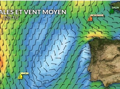 Sébastien Simon naviguera à l’avant d’un front froid d’une perturbation atlantique, dans un flux de sud-sud-est tonique d’une vingtaine de noeuds. Il progressera rapidement tribord amure avec un cap au nord-nord-est.