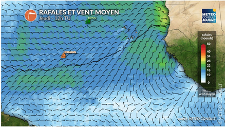 Jérémie Beyou tentera de trouver le passage de dorsale le plus étroit possible pour retrouver le vent de sud portant qui le poussera vers les latitudes tempérées. Il n’aura d’autre choix que de naviguer pendant quelques heures au ralenti mais devrait conserver suffisamment d’air pour ne pas se retrouver scotcher sur l’eau. Boris Hermann devrait grignoter du terrain sur son concurrent adversaire mais ses problèmes de foil limiteront sa vitesse.