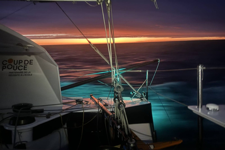 " La nuit a été particulièrement agitée, avec des éclairs presque incessants. C’était intense. Je ne veux pas porter malheur, mais j’ai l’impression qu’on commence à entrevoir la fin. Si ça se confirme, ce sera une très bonne nouvelle. Pour l’instant, j’ai du vent stable et le ciel est dégagé, ce qui me laisse espérer que je suis sorti de cette zone. "