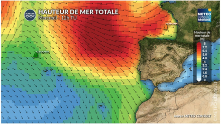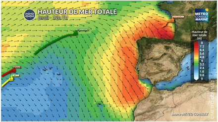 Benjamin Ferré et Jean Le Cam bénéficieront eux aussi de bonnes conditions de vent de secteur sud qui leur permettront de faire une route quasi directe vers le golfe de Gascogne. Jean Le Cam positionné un peu plus au sud que son rival aura un meilleur angle au vent et pourra espérer grapiller quelques dizaines de milles sur son rival Benjamin Ferré. Ces deux navigateurs progresseront dans une mer très maniable avec une houle de 2 à 3 m qui viendra par 3/4 arrière de leur bateau et ne gênera par leur progression vers le nord-est.