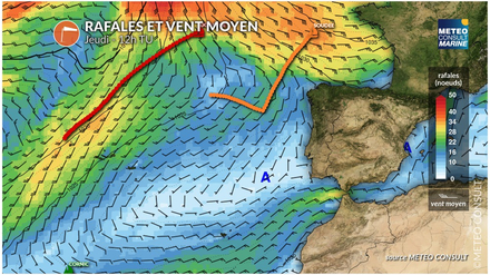 Violette Dorange progressera rapidement vers le nord-est dans un flux de sud-est qui se renforcera nettement pour atteindre 25 à 30 noeuds. La mer deviendra forte avec des vagues de l’ordre de 3 mètres.