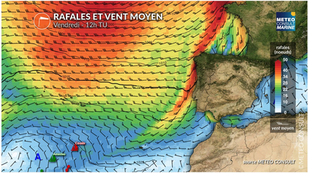 Samedi, la dorsale va se déplacer vers l’est et le Portugal, ce qui permettra à Amedeo et Cousin de reprendre de l’air en bordure ouest de l’anticyclone, sous un vent portant de sud-est restant faible. Dimanche, Manuel Cousin sera le mieux placé pour mettre le cap vers le golfe de Gascogne, sous un vent de 15 à 20 noeuds de secteur sud-ouest.