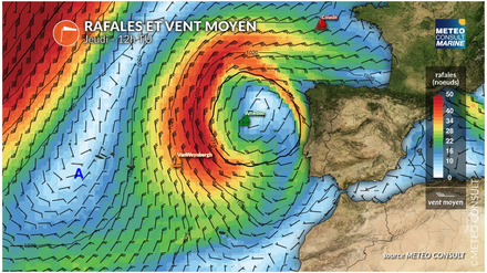 Fabrice Amedeo poursuit lui sa remontée au large de la côte portugaise, en proie à une virulente dépression qui arrive de nord-ouest. Les vents vont se renforcer d’ici la nuit prochaine, avec un régime de nord-est de 20 à 30 noeuds au près, ce qui ne sera pas de tout repos. Il pourrait arriver aux Sables d’Olonne mardi prochain en cours de journée.
