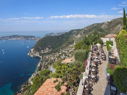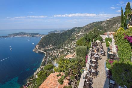 Le premier se situe dans le sud de la France, à Eze. Le restaurant Les Remparts à La Chèvre d'Or offre un panorama incroyable sur la mer bleue de la Côte d'Azur. Ce restaurant propose des plats locaux et de saison, et n'est ouvert que d'avril à septembre, le midi uniquement.