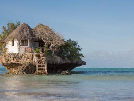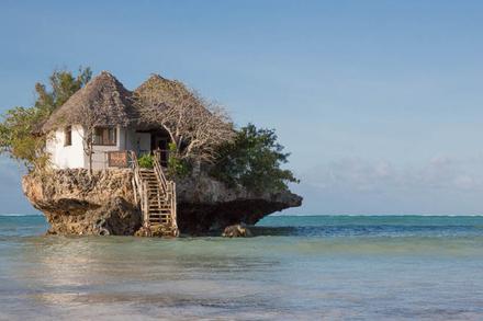 Pour finir notre sélection en beauté, direction l'archipel de Zanzibar et le restaurant The Rock. Ce n'est vraiment pas un restaurant comme les autres puisqu'il s'agit en réalité d'un énorme rocher posé au milieu de l'eau cristalline, transformé en restaurant. La carte est axée produits de la mer, péchés autour du restaurant. Quand la marée est basse, on peut y accéder à pieds sinon un petit bateau vous y emmène.