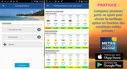 Avec la nouvelle version de l’application METEO CONSULT, vous pouvez également comparer les prévisions de vos ports favoris, de vos spots de surf préférés ou encore de deux plages voisines, pour choisir l’endroit où les conditions météo seront les meilleures.