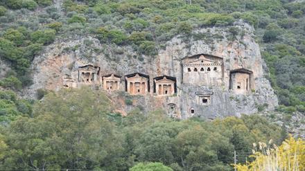 Avant de vous embarquer pour une croisière dans le golfe, la ville de Fethiye mérite une longue visite. Elle a été fondée au Ve siècle av. J.-C. et était connue à l’époque antique sous le nom de Telmessos. Elle changea ensuite de nom au VIIIe siècle ap. J.-C. pour s’appeler Anastasiolis. En 1284, sous l’empire Ottoman, elle prit le nom de Megri. Le nom actuel de Fethiye lui a été donné en 1934 en mémoire du pilote martyr Fethi Bey. Parmi les monuments les plus significatifs de cette ville, nous pouvons citer : les vestiges de la citadelle, un sarcophage dans le jardin de l’hôtel de ville, le monument le plus ancien, sur lequel se trouve des statues en reliefs de chevalier, l’amphithéâtre de Telmessos datant du début de la période romaine qui pouvait accueillir 5000 personnes. A ne pas manquer également la mosquée Eski Cami (1791) ainsi que le hammam qui possède une architecture à 6 arches et 14 coupoles. Dans le centre-ville, une visite au musée s’impose. Il abrite des œuvres allant de l’époque hellénique à l’époque byzantine et également des échantillons d’artisanats locaux (broderie, bijoux, etc.). Pour conclure cette visite, il ne faut pas manquer le marché aux poissons où vous pouvez choisir votre poisson et le faire cuisiner à votre goût dans l’un des restaurants du marché sans oublier celui de Paspatur où vous trouverez aussi bien des objets artisanaux que des vêtements ou des fruits. Avant d’embarquer pour d’autres aventures, il est impératif de se rendre aux tombes rupestres d’Amyntas 4è siècle ap. J.-C. creusées à même la falaise situées en périphérie de la ville. De ce site, on a une vue sur toute la ville de Fethiye.