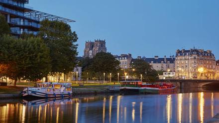 A Dinan, la base (Le Boat) est un point de départ qui permet de naviguer sur le canal d’Ille-et-Rance et la Vilaine jusqu’à la base principale de Messac. Sur ce parcours, dès le départ, la ville de Dinan avec ses 2648 m de remparts ainsi que le château de la Duchesse Anne, méritent une longue visite. Elle a été décrite par Châteaubriand qui y a fait une partie de ses études, peinte par Turner et contée par Roger Vercel. Elle reste très appréciée des artistes et des créateurs. Il suffit de remonter la rue piétonne du Jerzual (passage incontournable) entre le port et la ville haute pour non seulement découvrir de nombreuses demeures à colombages mais aussi des peintres, des sculpteurs et autres artistes qui ouvrent volontiers leurs portes. A moins d’une heure de navigation, vous arrivez à Léhon. Cette petite cité conserve un riche patrimoine historique dont les vestiges rappellent son importance à l’époque médiévale. La rue principale part du port et mène au château en ruine sur la colline en passant par l’abbaye bénédictine (IXe siècle). Ensuite, vous arriverez à Hédé, qui est surtout connue pour ses 11 écluses (une tous les 200 m) qui permettent de franchir un dénivelé de 27 m. Non loin de Hédé, la commune de Tinténiac propose le musée de l’outil et des métiers anciens ainsi qu’un espace aménagé (avec tables) pour le pique-nique. Enfin, nous arrivons à Rennes, capitale de la Bretagne. Cette ville d’art et d’histoire avec ses maisons à pans de bois, ses deux places royales dont celle de l’hôtel de ville (XVIIe siècle) ainsi que le parlement de Bretagne vous offre un bel ensemble à découvrir. Pour le parcours Dinan-Rennes, il faut environ 20 heures. De Rennes, pour rejoindre la base de Messac où vous pouvez rendre le bateau, comptez environ 8 heures de navigation.