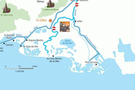 De Saint-Gilles (base Le Boat), vous pouvez effectuer une croisière aller-retour sur 3 jours en empruntant le canal du Rhône à Sète (100 km, 0 écluse). Sur ce parcours, vous pourrez découvrir une faune riche et variée (taureaux sauvages, chevaux, flamants roses, etc.). Saint-Gilles possède un patrimoine exceptionnel comme son abbaye du XIIe siècle, sa vieille crypte et son musée roman. Ensuite, vous passerez par Gallician, Aigues-Mortes où vous découvrirez les Salins du Midi. Ceux-ci produisent 250 000 tonnes de sel par an. Et pour finir, vous pourrez vous reposer sur les immenses plages de sable fin près de Palavas, Carnon et La Grande-Motte. En une semaine, avec un aller-retour (146 km, 0 écluses), vous pouvez poursuivre votre croisière via l’étang de Thau ou, en choisissant un aller simple, rejoindre Cassafières (98 km, 4 écluses) ou encore au départ de Cassafières (aller-retour), rejoindre Aigues-Mortes (168 km, 4 écluses).
