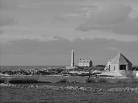 Un phare domine la mer, nuages au loin... la tempête est proche, tandis que des mouettes se baladent les pattes dans l'eau et qu'un couple d'amoureux se promène et se souvient, à Omaha Beach. Pas d'artifices : les photos sont le reflet de la réalité, soulignée et accentuée tout au plus.