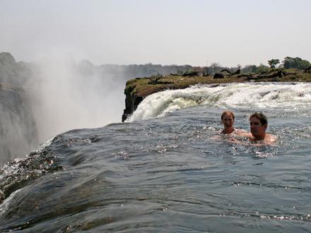 Enfin, une piscine à débordement naturelle, et dangereuse, "la piscine du Diable" aux Chutes Victoria, à la frontière du Zimbabwe et de la Zambie. Evidemment, située à 100 m de haut, la vue est incroyable mais le courant est fort et risque de vous entraîner directement dans les chutes... A observer de loin donc !