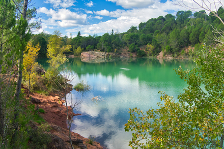 Ce plan d’eau, formé dans une ancienne carrière de bauxite, a peu à peu été conquis par la nature. Les pins et les chênes verts ont repris possession des rives, les cigales couvrent le silence, et les rochers sculptés par le temps se reflètent dans une eau d’un bleu presque irréel. Ici, pas de transats alignés ni de foule à l’horizon : seulement un miroir turquoise entouré de garrigue, baigné de lumière et de senteurs résineuses.