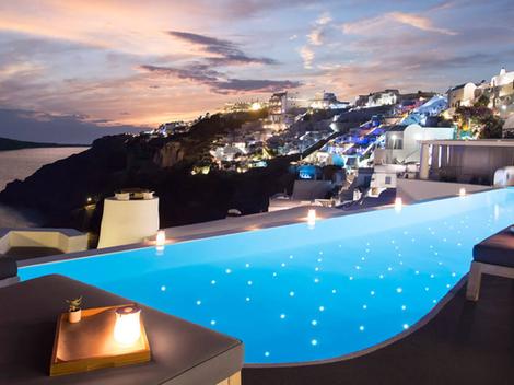 Cet hôtel est perché à 92 m sur les falaises d’Oia, le point le plus élevé de l’île de Santorin. Il surplombe les eaux turquoises de la mer Egée. La terrasse privative de votre chambre vous permettra d'observer les incroyables couchers de soleil depuis votre lit, ou depuis la piscine à débordement, ou encore depuis le restaurant... Tout l'hôtel est tourné vers la mer, pour votre plus grand bonheur ! A cette période de l'année, comptez environ 1 000 euros la nuit pour une chambre classique, et jusqu'à 2 500 euros pour la plus belle des suites. Pourquoi pas, pour une lune de miel ?