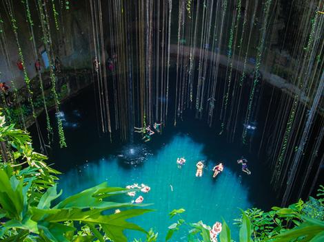 Gouffres d’effondrement en milieu karstique caractéristiques de la région, qui, grâce aux rivières souterraines de la région, forment des grottes et des bassins naturels, les quelque 6 000 cénotes de la Péninsule du Yucatán sont des témoins vivants du passé, qui rappellent aux visiteurs qu’avant qu’une météorite ne percute la région il y a 65 millions d’années, la péninsule était immergée sous les eaux.