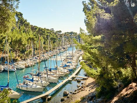 Même sans bateau personnel, la calanque reste accessible. Des excursions en mer permettent de l’approcher depuis Cassis ou Marseille. À bord du Calendal, un bateau promenade qui navigue toute l’année, vous pourrez admirer la calanque sous un autre angle, glissant entre les falaises calcaires et les pontons chargés de voiliers. L’occasion d’explorer également d’autres calanques alentour, comme Port-Pin et En-Vau.