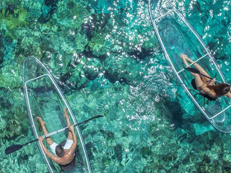 Ce petit paradis figure parmi les 10 meilleurs sites de plongée au monde, et l'eau y est tellement claire, que vous n'avez même pas besoin d'un masque et d'un tuba : c'est là que votre canoë transparent entre en jeu !