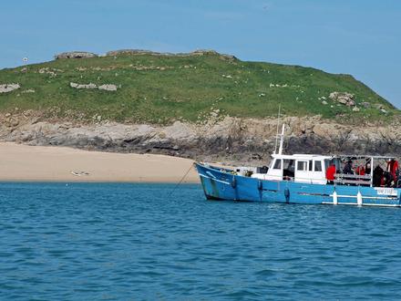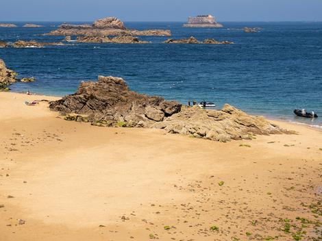 Le gros intérêt de cette île est la grande plage de sable fin, la seule de la côte d’émeraude à être orientée au Sud et séparée en deux par le rocher Saint Michel. A quelques kilomètres de deux villes (Saint-Malo et Dinard) souvent saturées, c’est le calme et le dépaysement. Un débarcadère sert aux dessertes des vedettes venant de Saint-Malo et de Dinard. La seule habitation sur l’île est le restaurant : Le repère des corsaires. Pas toujours ouvert et, bien souvent, il faut réserver. On peut se contenter, s’il est ouvert, de prendre un verre en terrasse et de pique-niquer sur la plage.