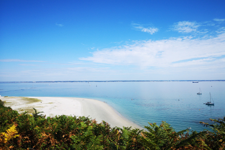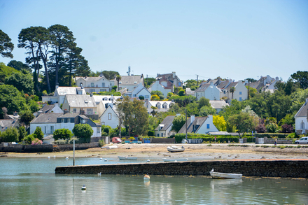 Au centre du golfe du Morbihan, l’île aux Moines s’offre comme une escale paisible et verdoyante. Protégée par les courants du golfe, elle bénéficie de mouillages sûrs qui font le bonheur des navigateurs. À terre, les sentiers serpentent entre pins et longent des maisons blanches aux volets colorés, donnant une impression de petit paradis insulaire. Depuis le pont du bateau, on aperçoit déjà la Grande Plage bordée de cabanes, et l’envie de plonger se fait immédiate. Une escale parfaite pour profiter de la douceur du golfe et de ses lumières changeantes.