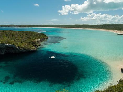 Niché parmi les falaises du rivage de Long Island, Dean's Blue Hole est le deuxième trou bleu le plus profond du monde. Il s'agit d'un site populaire auprès des plongeurs libres qui immergent dans ses profondeurs.