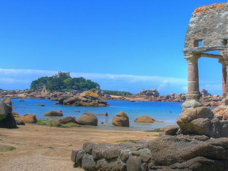 Nichée au cœur de la Côte de Granit Rose face à l’archipel des Sept-Îles, Perros-Guirec, qui accueille ses visiteurs dans un site naturel protégé d’une rare beauté, est également le berceau de légendes qui ont façonné l’histoire de la Bretagne, comme celle de l’Oratoire Saint-Guirec. Érigé sur l’un des nombreux rochers de la Côte de Granit Rose non loin de la baie de Ploumanac’h, l’oratoire chrétien construit en l’honneur de Saint-Guirec, un moine gallois venu d’Outre-Manche pour évangéliser les Bretons au VIIe siècle, fait partie des attractions touristiques phares de la commune. Et pour cause, cet édifice classé monument historique, qui abrite dans une construction en forme de niche une statue du Saint en tenue d’Évêque, a fait l’objet de plusieurs légendes. La plus connue d’entre elles voulait que les jeunes filles célibataires qui souhaitaient se marier rapidement enfoncent des épingles à cheveux dans le nez de la statue. Celles dont l’aiguille restait plantée voyaient leur vœu exaucé avant la fin de l’année. L’oratoire est également associé à d’autres coutumes, comme celle de faire embrasser les pieds de la statue du Saint aux jeunes enfants, afin qu’ils marchent plus tôt. Attention, si vous souhaitez vous en approcher, renseignez-vous sur l’horaire des marées, sachant que le rocher sur lequel il est érigé est entouré d’eau à marée haute.
