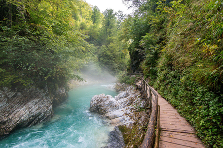 À quelques minutes de Bled, les gorges de Vintgar tracent un chemin spectaculaire entre falaises et rivière. La Radovna y serpente sur 1,6 km dans une gorge encaissée, franchissant rapides, vasques et cascades.