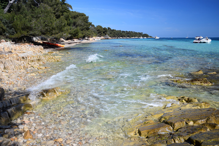 o Débarquement : possible partout en annexe sur Sainte-Marguerite (plages), uniquement au ponton sur Saint-Honorat.