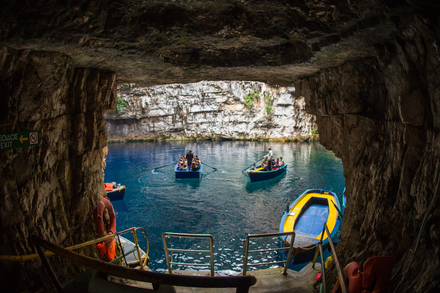 Initialement, l’accès à la grotte n’était possible que par l’intermédiaire d’une corde à partir du trou au-dessus de la grotte, qui aurait été créé lors d’un séisme. En 1963, un tunnel a été creusé pour permettre aux visiteurs d’accéder plus facilement à la grotte et, depuis lors, la grotte de Melissani est l’une des principales attractions des visiteurs de l’île de Céphalonie.