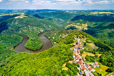 Le parcours commence à Ébreuil, traverse le charmant village de Chouvigny dominé par son château médiéval, puis file vers le méandre de Queuille - un des plus beaux points de vue de la région. En chemin, la route sinueuse épouse les reliefs, croisant de rares hameaux et des forêts épaisses. Pas de boutiques de souvenirs ici, ni de parking surdimensionné. On y vient pour marcher, pêcher, ou descendre la rivière en canoë dans un décor de carte postale.
