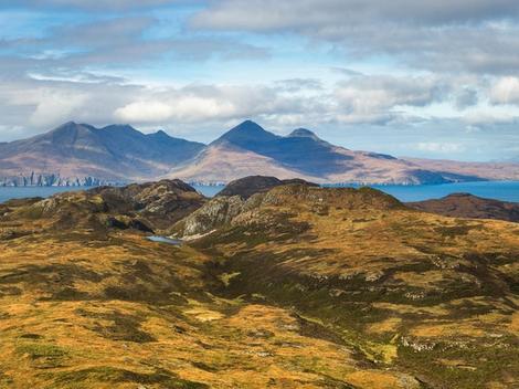 La deuxième plus grande île possède une communauté verte qui produit près de 95 % de son électricité à partir d'énergies renouvelables. Il y a beaucoup de sites à explorer, de la plage de Singing Sands qui donne sur Rùm aux sombres grottes de Cathedral et Massacre, au village abandonné de Grulin ou à la curiosité la plus caractéristique de l'île, le bouchon volcanique à flancs presque verticaux d'An Sgurr qui domine l'extrémité sud de l'île.